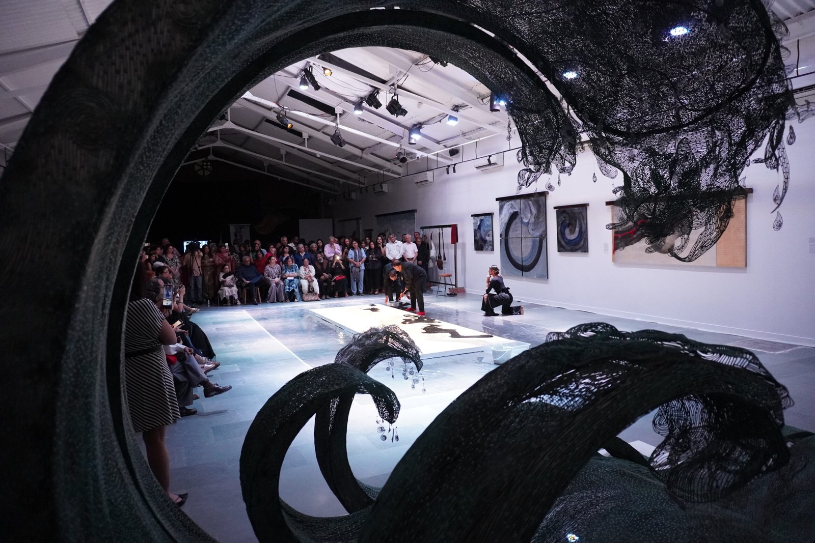 This body of work is calligraphic in essence. The spontaneous gesture expressed on canvas permits no mistakes, hesitation or second thoughts. It has to come from the ‘Hara’ – the gut to express an intense emotion in a few strokes; my heart beats faster, the blood rushes down my veins to the tip of the brush and explodes — at last I am at peace!