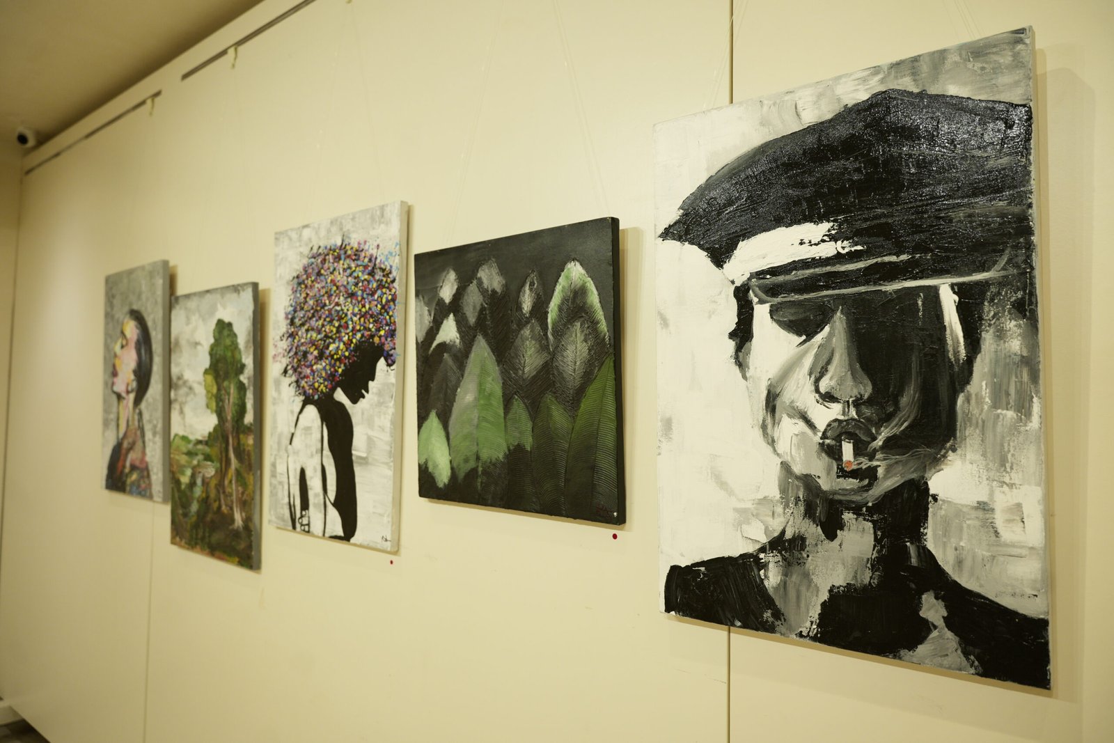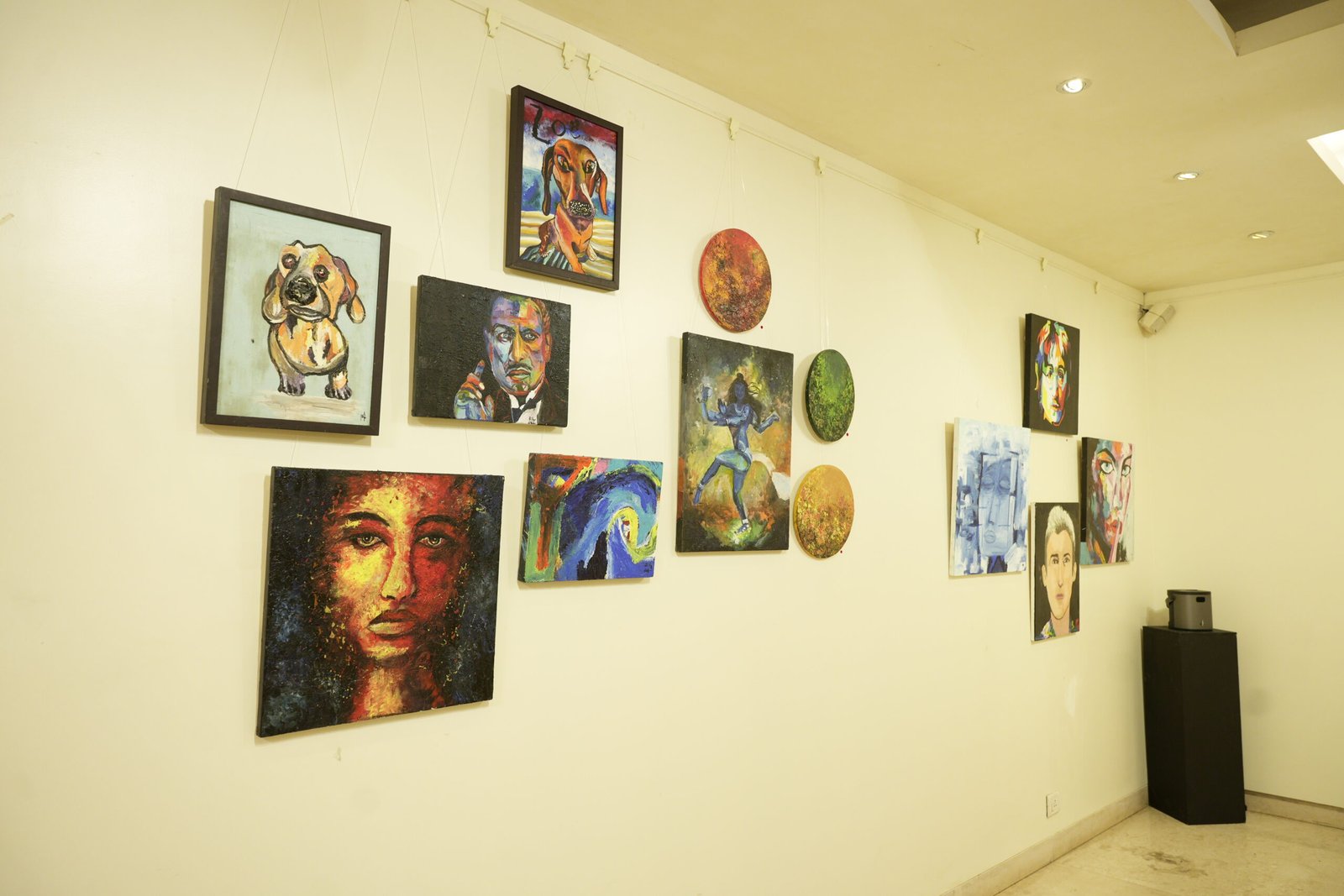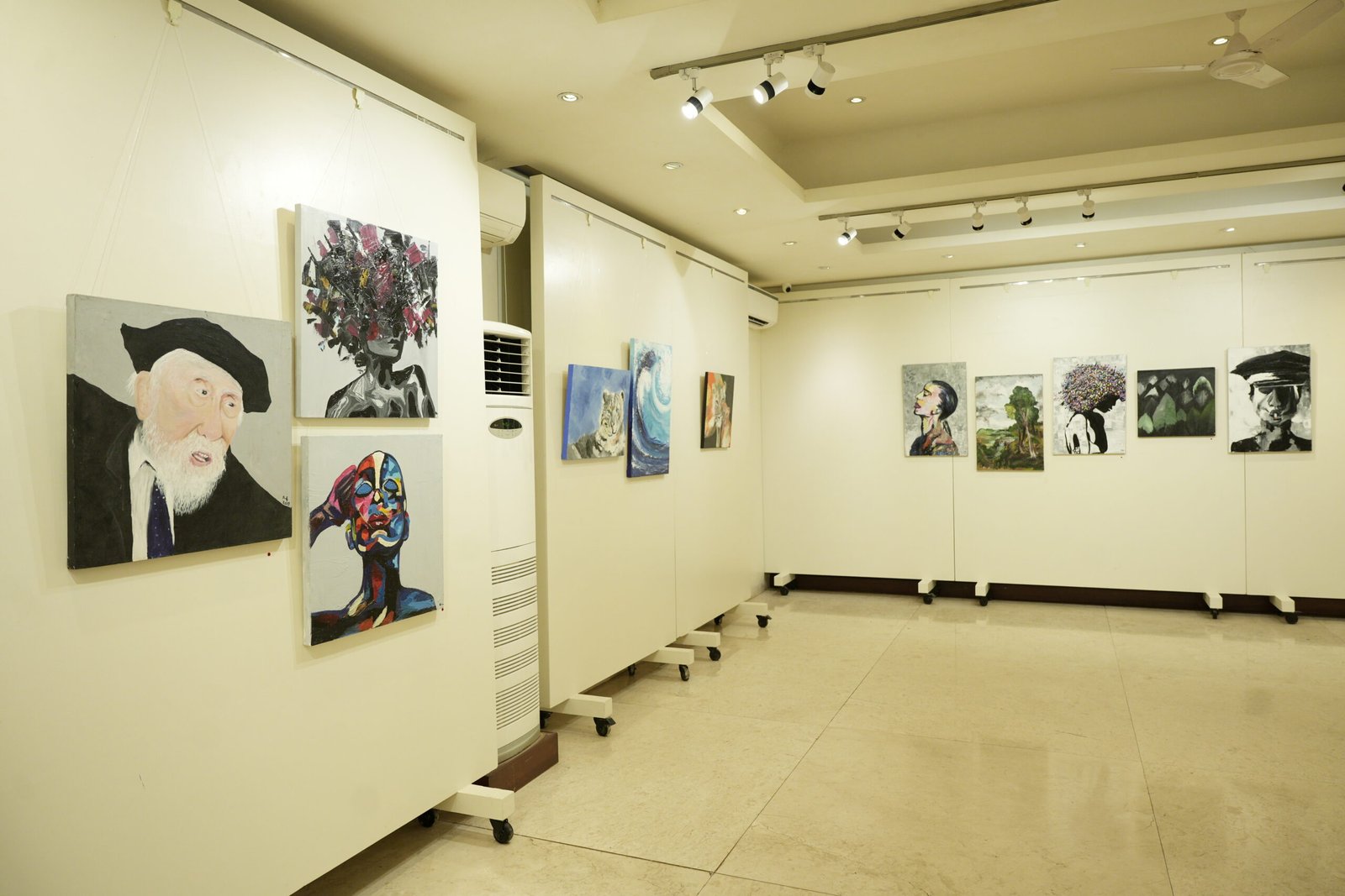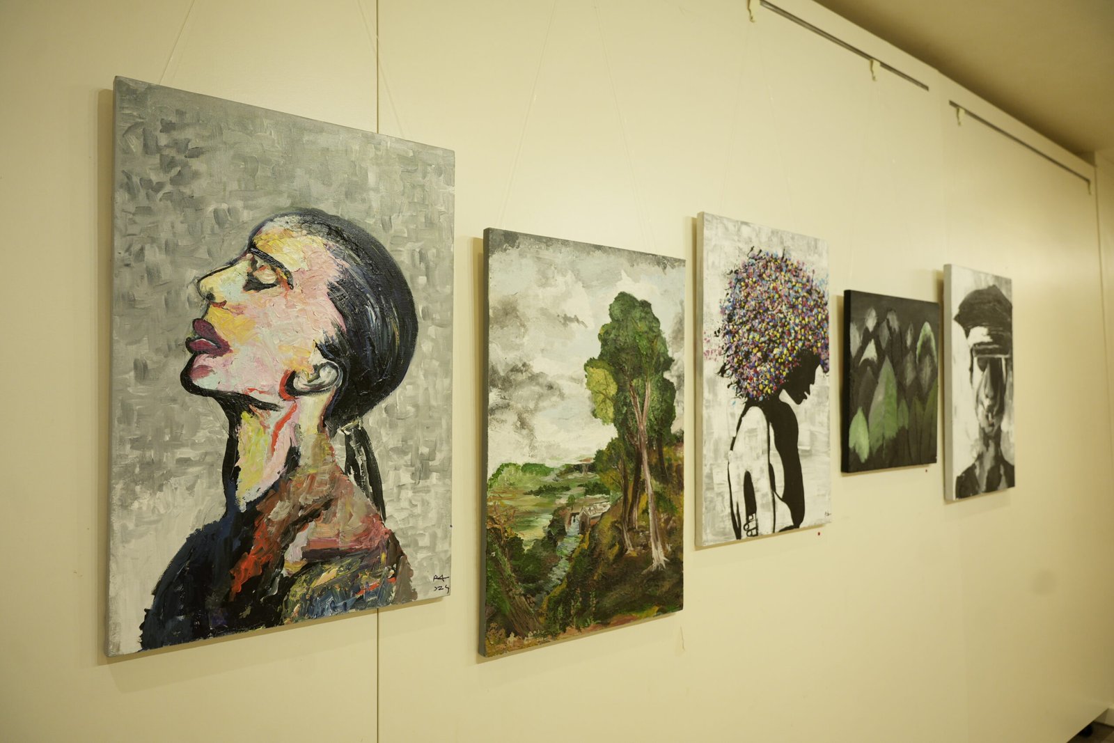 Most of the different paintings on canvas are done using my fingers, as holding a brush is still uncomfortable for me. I also have made use of different objects such as toothbrushes, combs, tissue papers and newspapers, to create each work of art. Mainly I use charcoal sticks and acrylic paints for my different works and my inspirations are Da Vinci, Klimt, Picasso, Van Gogh and Raja Ravi Varma. My work has been previously displayed in exhibitions in Mumbai, though never to this scale.