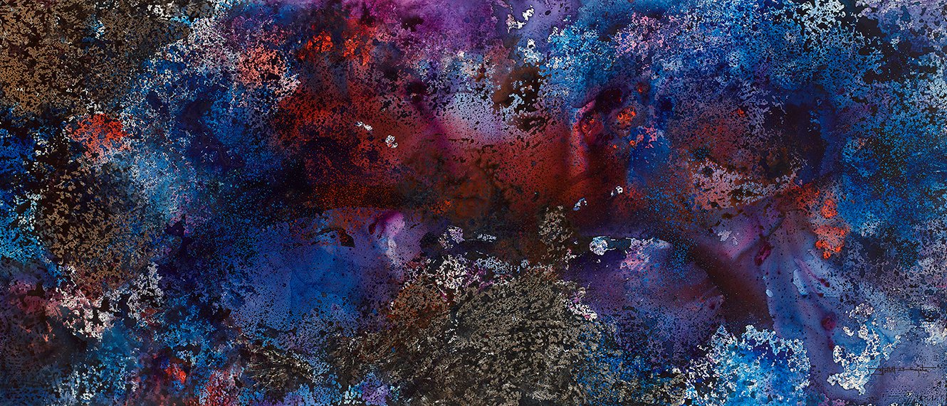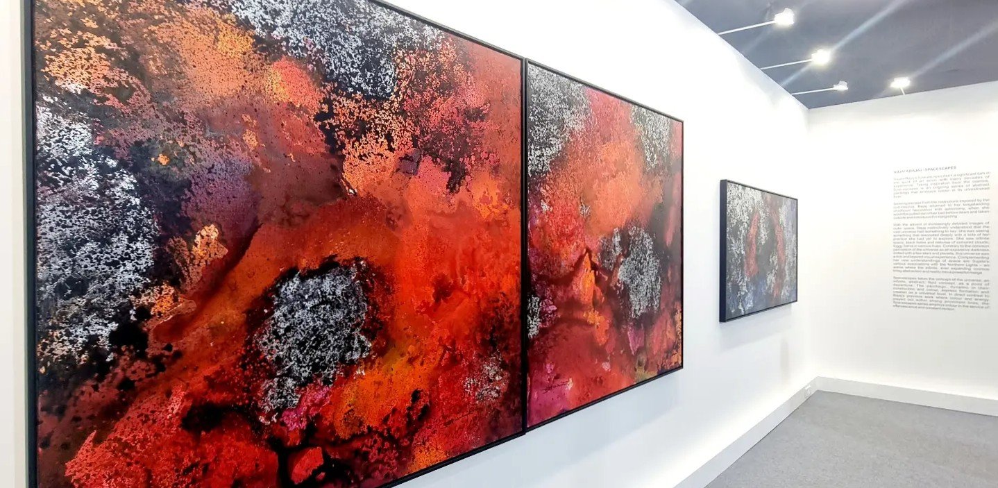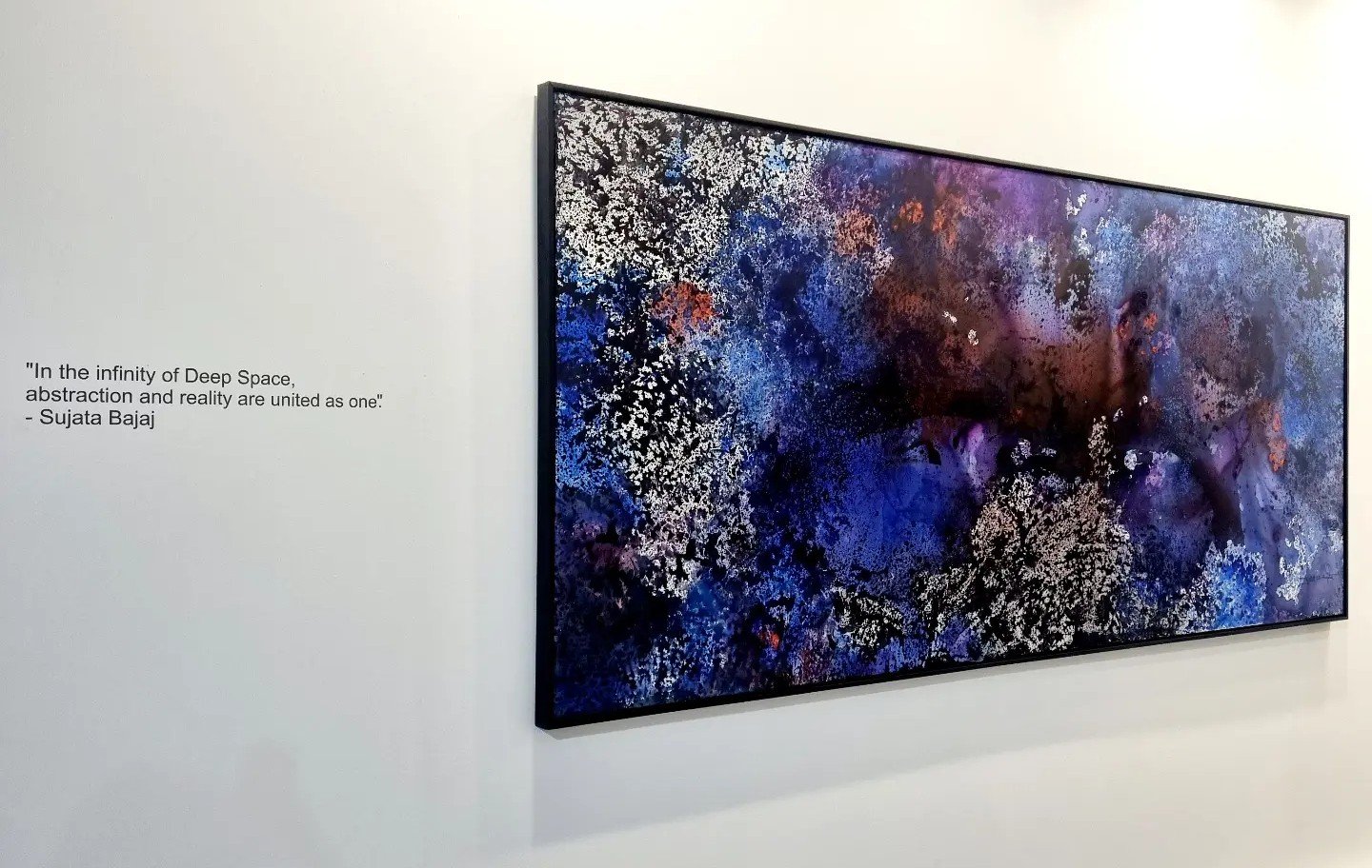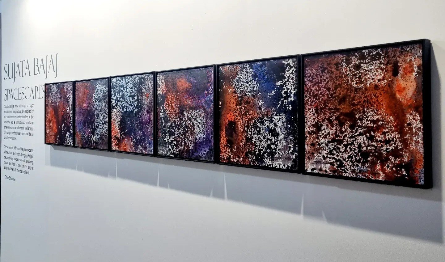 Sujata Bajaj’s SPACESCAPES mark a significant turn in the work of an artist with many decades of experience. Taking inspiration from the cosmos, SPACESCAPES is an ongoing series of abstract paintings that embrace colour in its unrestrained form.